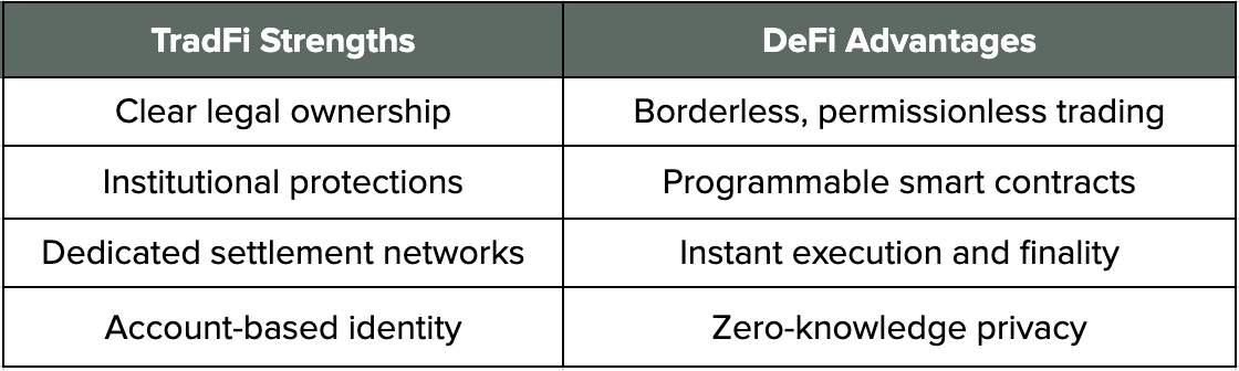 Tokenization is uniquely positioned to fuse the strengths of traditional finance (regulation, custody, capital scale) with the programmability and open access of blockchain-native systems (DeFi). Tokenized RWAs enable the use of real assets in DeFi protocols—bypassing high volatility and unlocking new liquidity markets (Elliptic, 2025).